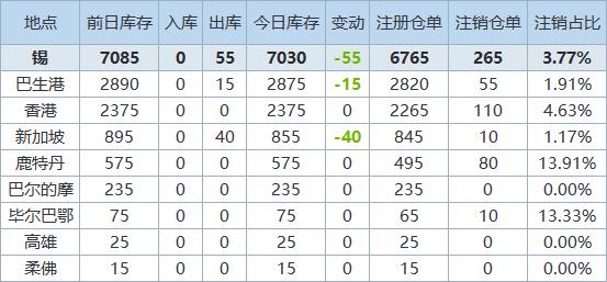 》查看更多金属库存信息
