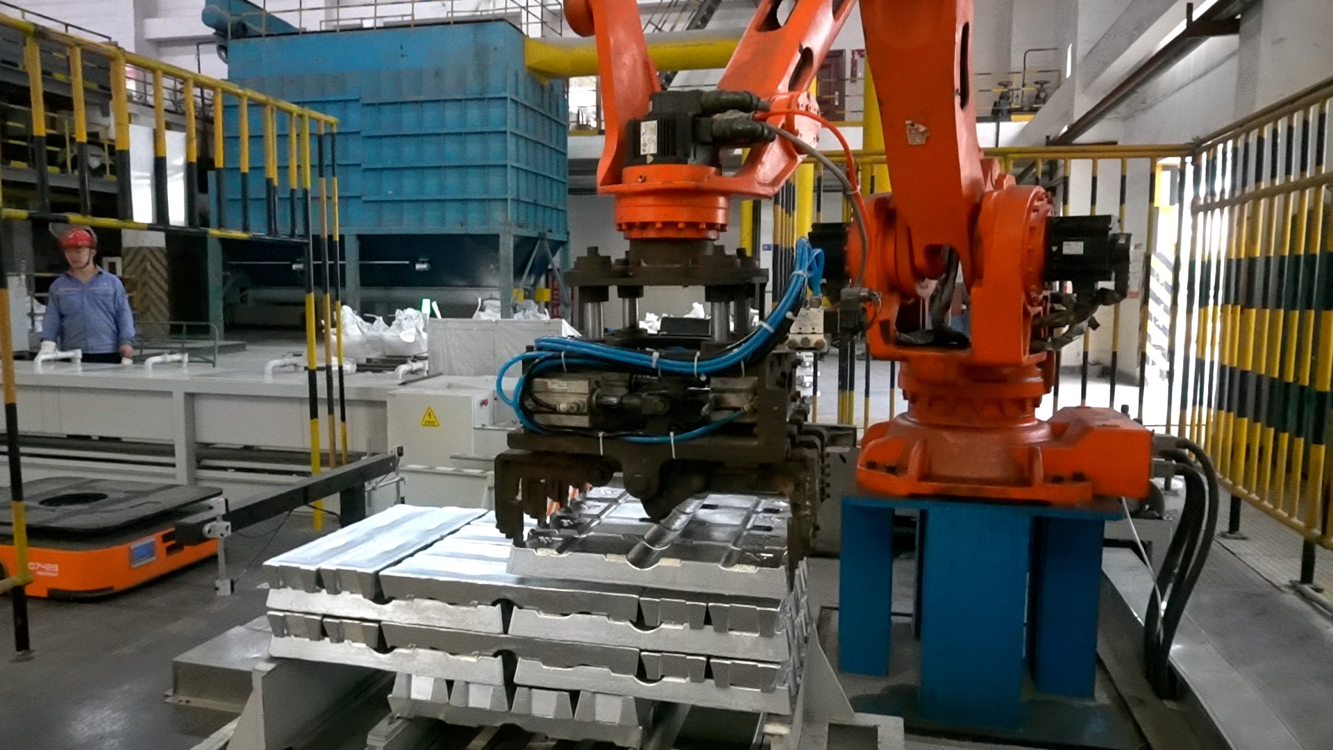 公司研发的后端无人化智慧物流系统在有色金属行业大放异彩,后端智慧物流系统是将冷却、码垛、移动、打带、套膜、搬运、称重、贴标、产品上下线、产品出入库、产品装车等人工操作的传统工艺流程,通过自动化设备与AGV输送机器人、坐标机器人、RCS系统、PDA等智能算法系统、信息系统完美结合,实现后端包装物流管理无人化、智能化、数字化、可视化。提高车间生产效率,降低人工作业强度与风险,节省企业生产成本,提升企业竞争力。