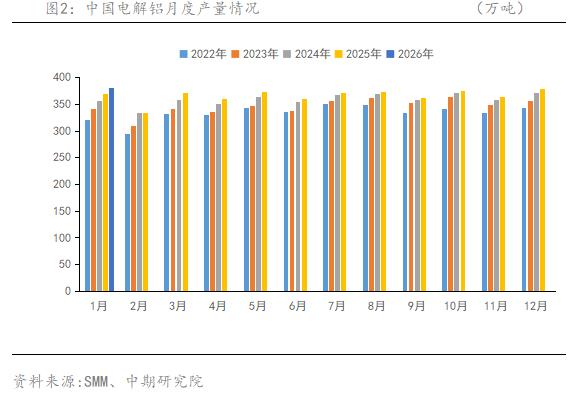 2026年1月,海外电解铝生产延续稳步增长。SMM数据显示,其总产量同比增长1.9%,日均产量环比亦提升0.5%。增长主要来自关键项目的推进:印尼产量达85.99万吨,同比大幅增长16.05%,新投产能持续释放;同时,安哥拉首座电解铝厂于1月15日正式投产,标志着该国跻身电解铝生产国行列。