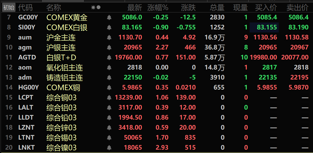 隔夜内盘基本金属普涨。沪铜涨0.26%。沪铝跌0.08%,沪铅涨0.06%。沪锌跌0.04%。沪锡涨0.89%。沪镍涨2.3%。此外,氧化铝主力期货平于2818元/吨,铸造铝主连跌0.02%。