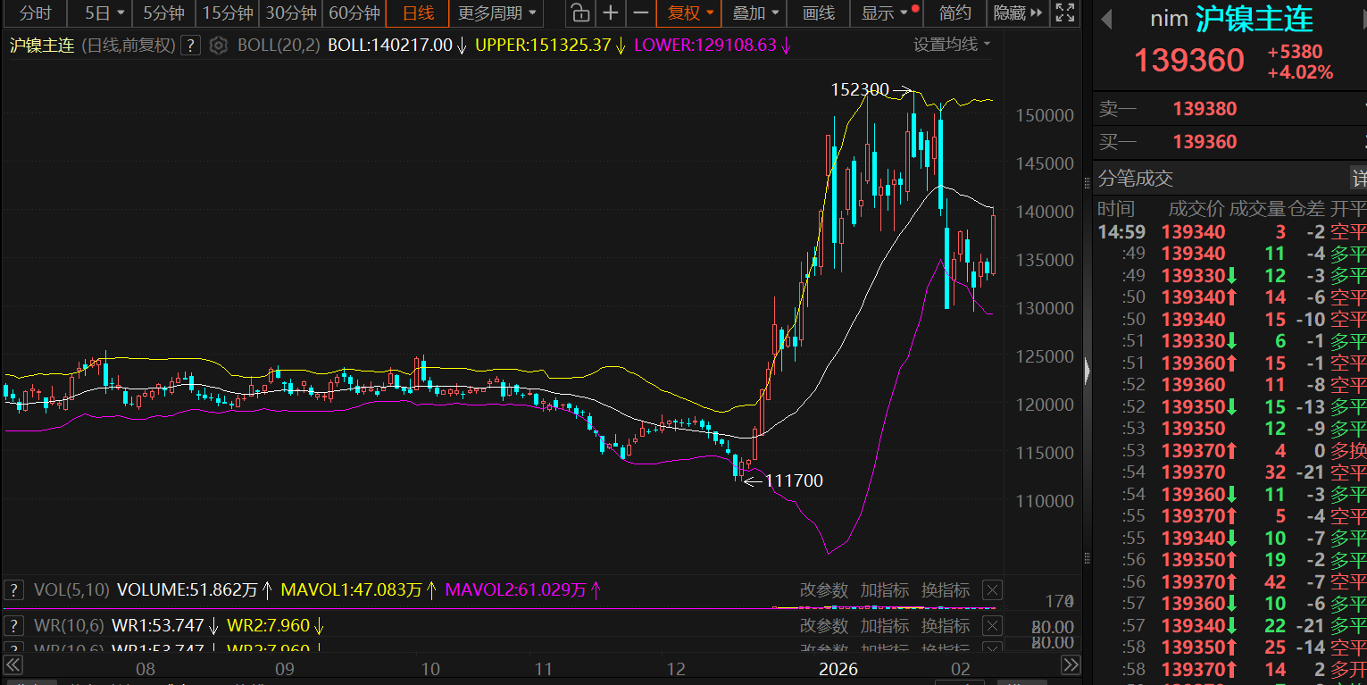 SMM 2月11日讯:今日受印尼镍矿配额落地的消息刺激,沪镍价格持续拉涨,截至日间收盘,沪镍主连以4.02%的涨幅报139360元/吨。