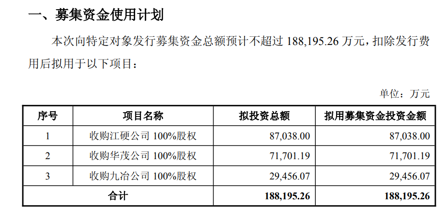 2月11日,江钨装备公告称,为贯彻实施公司整体发展战略,顺应国家政策趋势,增强公司资本实力,进一步提升公司核心竞争力,公司拟通过向特定对象发行 A 股股票的方式募集资金,扣除发行费用后用于收购江硬公司、华茂公司、九冶公司各 100%股权。公司对本次向特定对象发行募集资金运用的可行性分析如下: