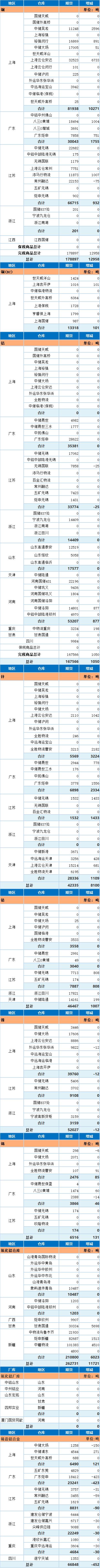 11月6日上海期货交易所金属库存日报