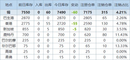 》查看更多金属库存信息