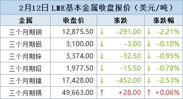 2月12日(周四),伦敦金属交易所(LME)铝价触及近两周最高,此前澳洲South32确认其莫桑比克一家冶炼厂将暂停生产,但随后所有金属价格均下跌,因投资者情绪恶化且其他金融市场急挫。