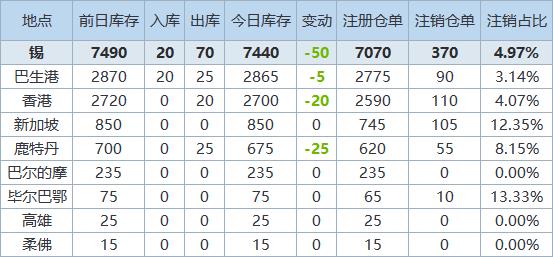 》查看更多金属库存信息