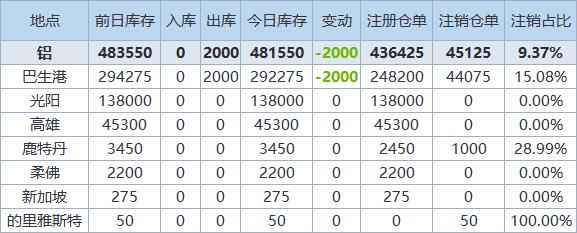 2月12日LME金属库存及注销仓单数据
