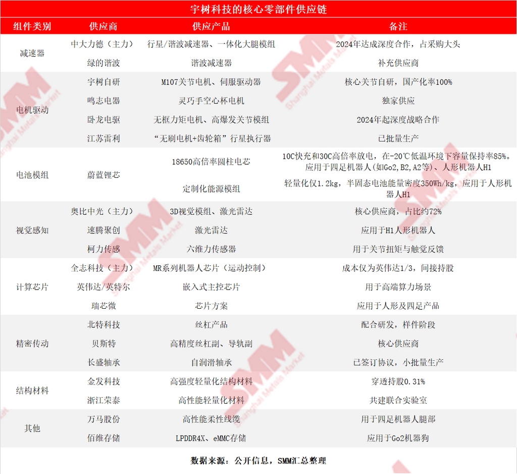 宇树科技的核心零部件供应链已高度国产化。