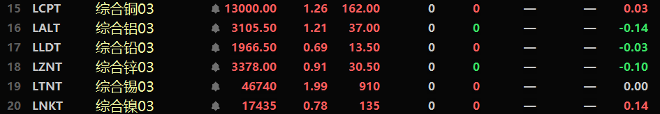 伦敦时间2月20日17:00(北京时间2月21日01:00),LME三个月期铜上涨155美元或1.21%,收报每吨12,964.0美元;盘中创一周新高。LME三个月期铝上涨35美元,或1.14%,收报每吨3,102.5美元。