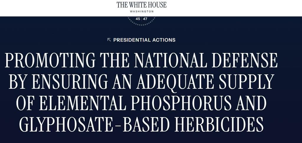 要点:2026年2月19日,唐纳德·特朗普总统在白宫签署那份将元素磷和草甘膦除草剂列为“国防关键物资”的行政命令,他实际上承认了一个令美国尴尬的现实:在这个从半导体到导弹制导都离不开的化工门类上,美国的工业基础已经空心化到只剩一家企业支撑。