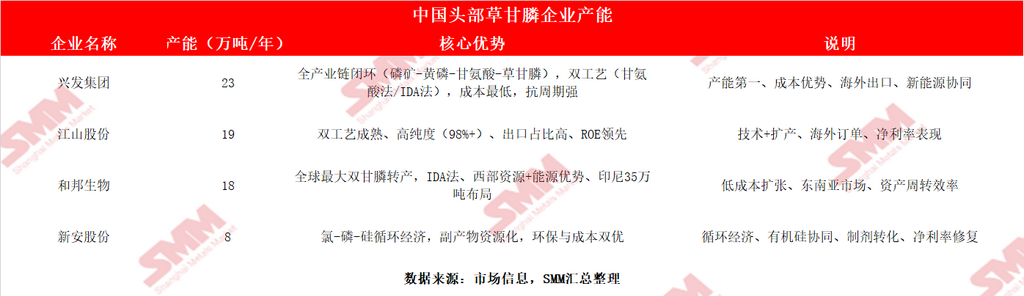 全球草甘膦产能约118万-125万吨,中国占据68%-70%的份额,是绝对的供给核心。而这其中,产能集中度极高,形成了层次分明的竞争梯队。