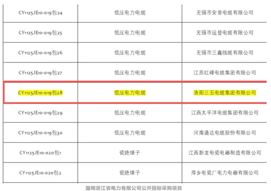 2025年底洛阳三五电缆集团捷报频传,接连中标两大行业重磅项目!一举拿下国网吉林省电力有限公司2025年第二次物资协议库存公开招标采购项目、国网浙江省电力有限公司公开招标采购项目,凭借严苛的品质管控、扎实的技术积淀与完善的履约服务体系,再度彰显在电力线缆领域的核心竞争力与行业标杆地位。