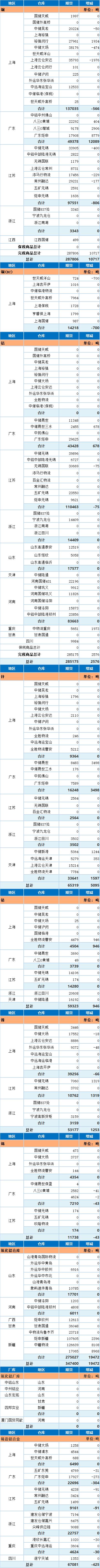 6月5日上海期货交易所金属库存日报