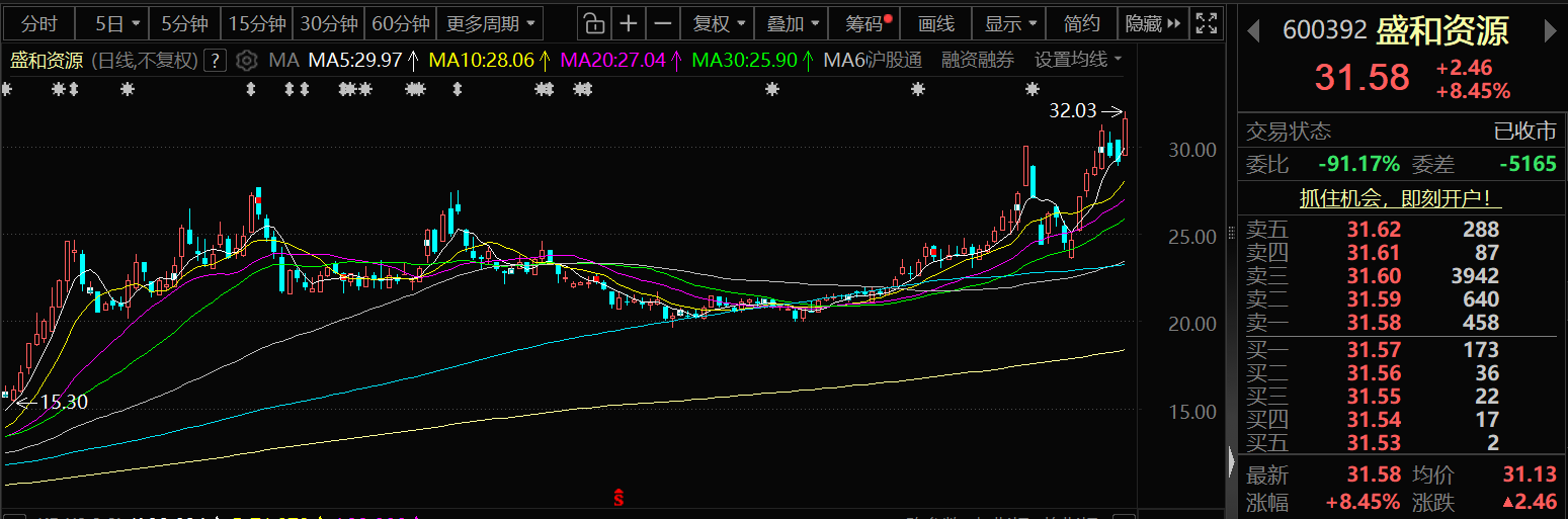 稀土永磁概念板块在2月25日出现了两连涨,而盛和资源作为板块中的个股亦有不俗的表现。截至2月25日收盘,盛和资源涨8.45%,报31.58元/股。
