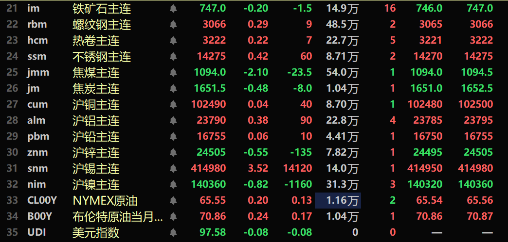 此外,截至午间收盘,铂主连期货涨1.99%,钯主连期货跌1.53%。