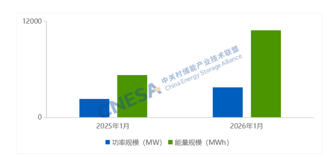 2026年1月中国新型储能市场开年向好,1月新型储能投运规模同比增长超60%。同时,市场深层结构较去年同期有所调整: