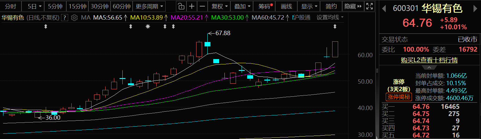 2月27日,华锡有色股价再次涨停,这是其继2月25日涨停之后,再一次收获的涨停,实现了3天2板!