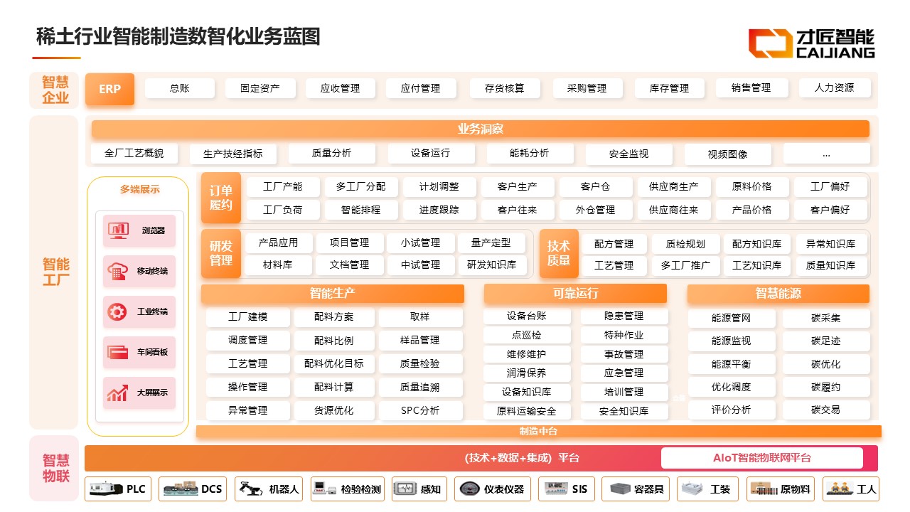 公司以 AI 为核心,自研三大平台:AI+大数据平台实时处理烧结温度、磁性能检测等工业数据、预测工艺偏差与质量风险;AI+低代码平台支持快速搭建符合稀土永磁生产管理逻辑的应用;工业物联平台(CJ-AIOT)实现烧结炉、气流磨等设备智能管控与 AI 能耗优化。