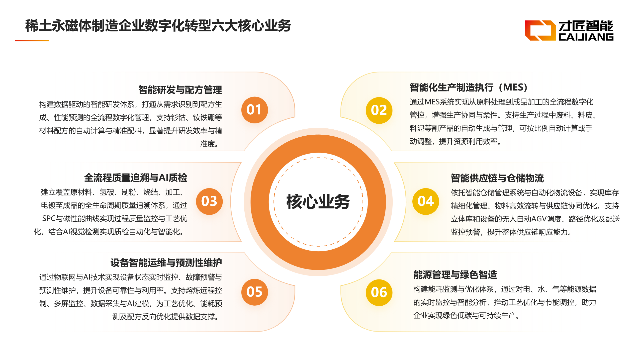 上海才匠智能科技有限公司总部位于上海,是深耕稀土永磁体制造领域的专业数智化服务商,面向稀土永磁从配料、熔炼、制粉到烧结、加工的全流程,提供从诊断规划到落地运维的全链路数字化转型解决方案。2021年设立稀土行业工业互联网研发中心,深度聚焦稀土产业链的数字化研发与创新。