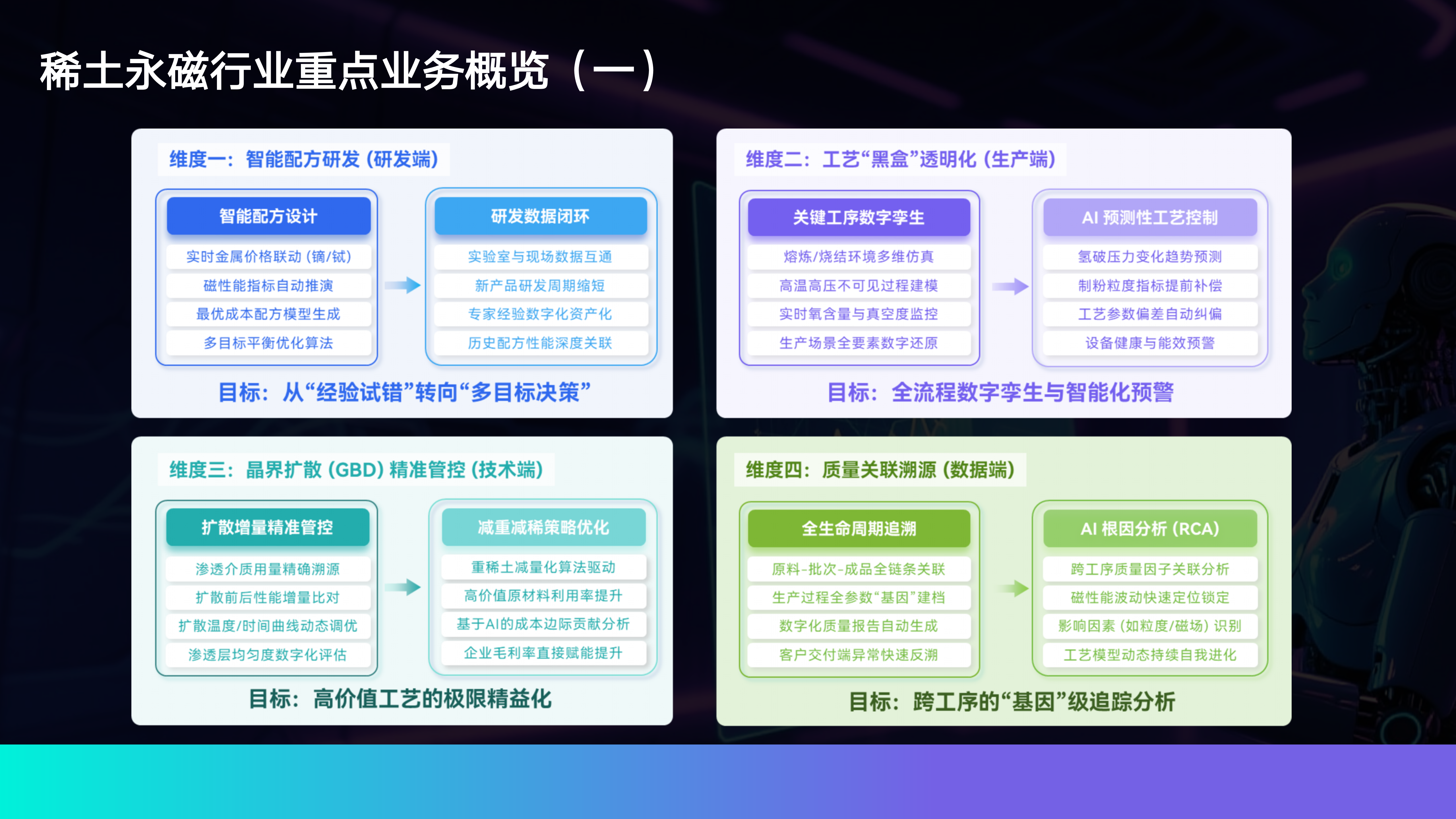 公司于2021年设立稀土行业工业互联网研发中心,持续深耕稀土产业链的数智化创新。作为国家级智能制造系统解决方案“揭榜挂帅”项目单位(2025年入选),才匠智能已形成覆盖研发、生产、运营、运维的端到端服务闭环能力。