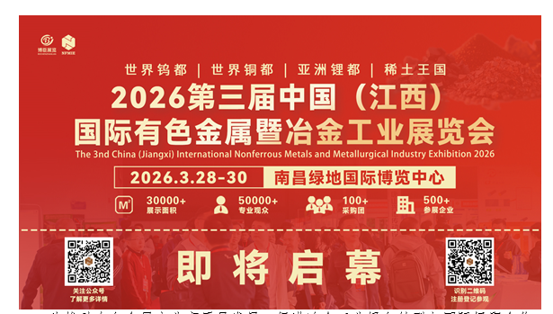 为推动有色金属产业高质量发展,促进冶金工业绿色转型与国际经贸合作,2026第三届中国(江西)国际有色金属暨冶金工业展览会筹备工作已全面就绪,将于2026年3月28日—30日在南昌绿地国际博览中心隆重举办。本届展会立足江西“世界钨都、世界铜都、亚洲锂都、稀土王国”的产业禀赋,聚焦新型工业化与新质生产力,打造集展示、交流、贸易、合作于一体的国际化专业平台。