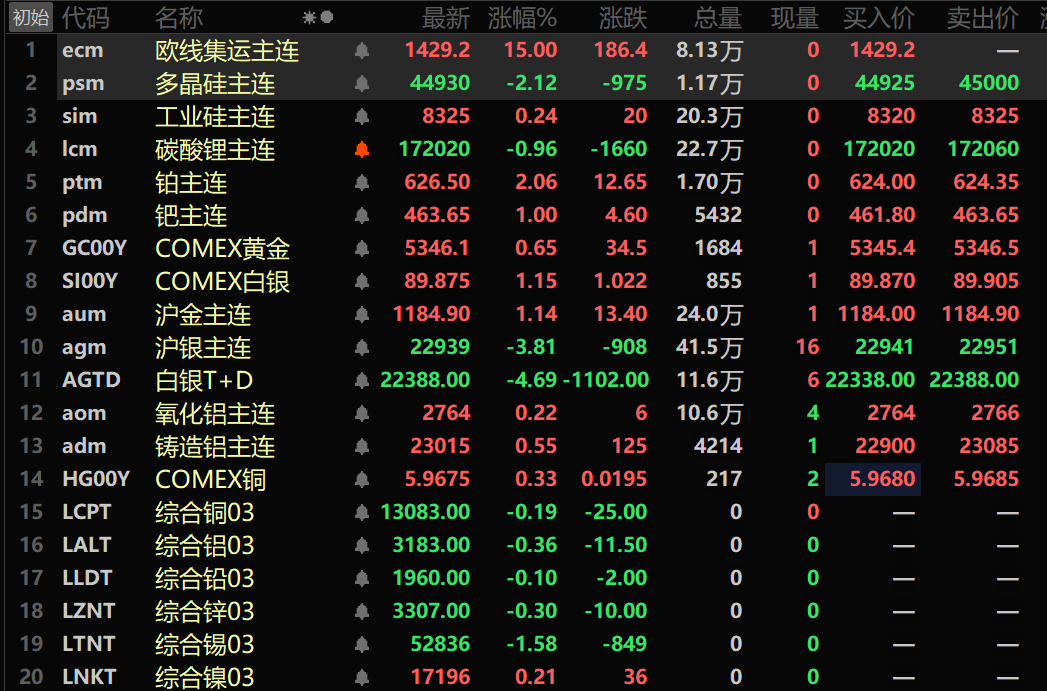 金属市场方面: