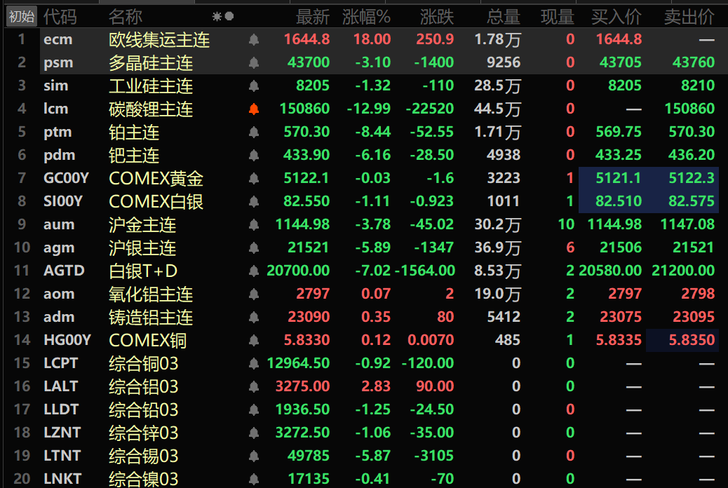 【广期所发布市场风险提示函】据广期所公告,近期影响市场的不确定性因素较多,请各会员单位切实加强投资者教育和风险防范工作,提醒投资者理性参与、合规交易,共同维护市场平稳运行。