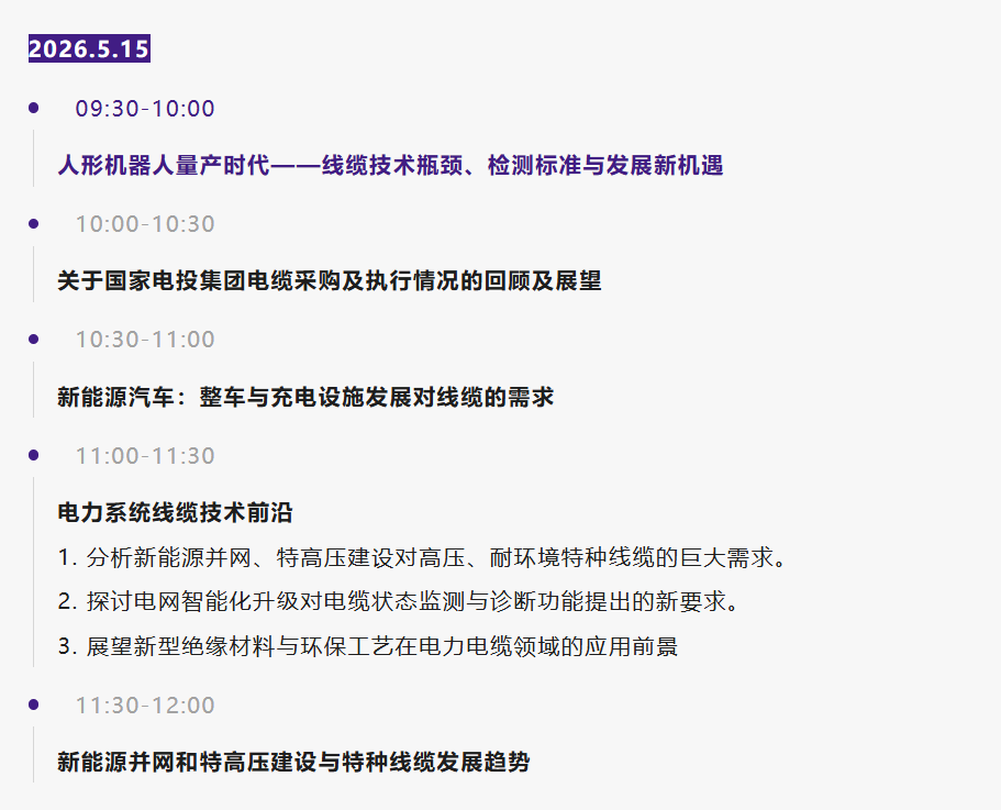 在此行业变革节点,SMM WCCE 2026电线电缆展将于2026年5月14-15日在苏州举办,特邀深测评总经理/智能机器人实验室创始人乔森,带来《人形机器人量产时代——线缆技术瓶颈、检测标准与发展新机遇》专题分享。乔森是中南大学硕士,深耕检测认证行业23年,是该领域领军人物。他曾任职于MTS、DEKRA、SGS等知名跨国集团,历任主管、经理、总监、高级工程师、职业经理人,积累了深厚的行业经验与管理能力。同时,他还担任深港合作区技术共性平台、智能机器人实验室、深圳市智能机器人“一站式”服务平台创始人及“深测评”董事长,在智能机器人及检测认证领域极具影响力与独到见解。本次分享将聚焦人形机器人量产背景下,线缆技术瓶颈、检测标准及行业新机遇,为相关企业破解难题、把握趋势提供专业建议。