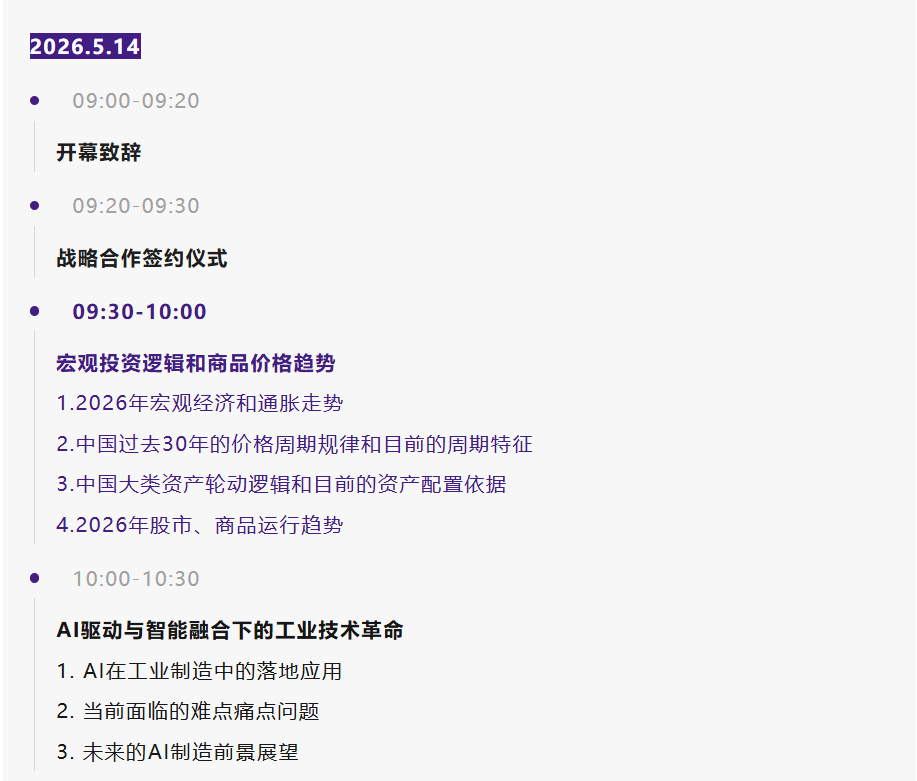 在此行业变革节点,SMM WCCE 2026电线电缆展将于2026年5月14-15日在苏州举办,特邀东吴期货首席投资官兼研究所所长吴照银,带来《宏观投资逻辑和商品价格趋势》专题分享。吴照银从业经历横跨证券、基金、保险、信托、期货等多个投资领域,历任原中航信托宏观策略总监、安信证券首席策略师、国联安基金管理公司基金经理兼首席宏观策略分析师等职,还曾任职于中国人保资产管理公司、中海基金管理公司,深耕宏观策略、证券投资及大类资产配置领域,拥有深厚的理论积淀与丰富的实践经验。其投研团队曾获2012年公募基金全行业权益投资类业绩排名第一,他本人于2014年斩获第一财经最佳策略分析师第一名,还曾荣获上海市哲学社会科学优秀成果奖,目前担任众多财经媒体专栏作家及客座嘉宾,在行业内极具影响力。本次专题分享围绕四大核心展开:解读2026年宏观经济与通胀走势,剖析中国过去30年价格周期规律及当前周期特征,讲解中国大类资产轮动逻辑与当前资产配置依据,预判2026年股市、商品运行趋势,为投资者把握宏观机遇、优化资产配置提供专业建议。