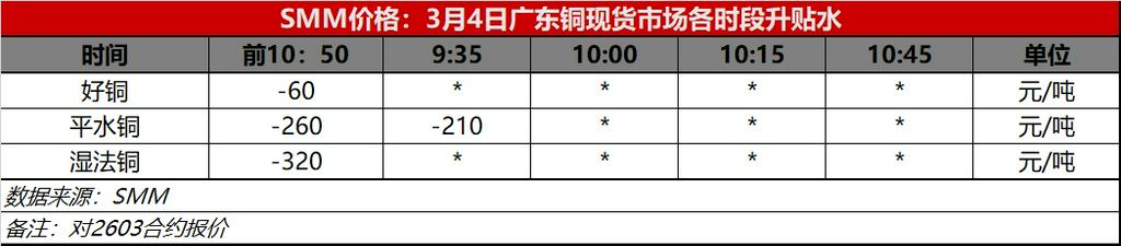 3月4日广东铜现货市场各时段升贴水(第一时段9:30)【SMM价格】