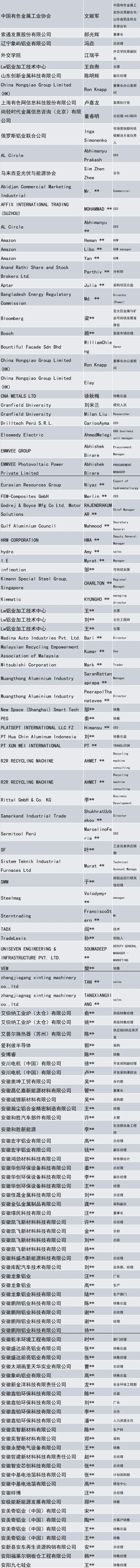 最新参展参会企业名单重磅发布!中铝、俄铝、索通发展、象屿铝业、创新金属、鼎胜新材、齐力澳美、金铝轻合金、奋安铝业、中亿丰制造、凯飞新材料、南南铝业、常铝股份、大正金属……超千家产业链头部企业已确认出席!