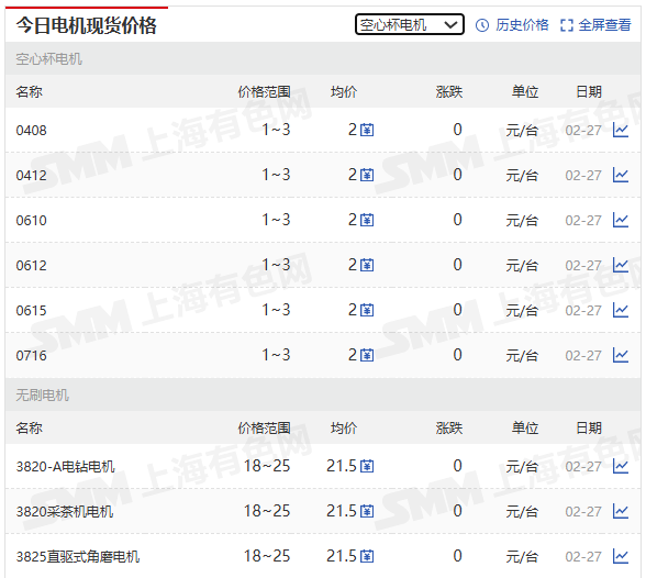 想知更多三相异步电动机、变频电机、直流有刷电机、扁平电机、减速电机、线性电机、空心杯电机、电机铁芯等各种型号含税的周度价格,敬请点击查看SMM电机专区(https://hq.smm.cn/electric-machinery)。