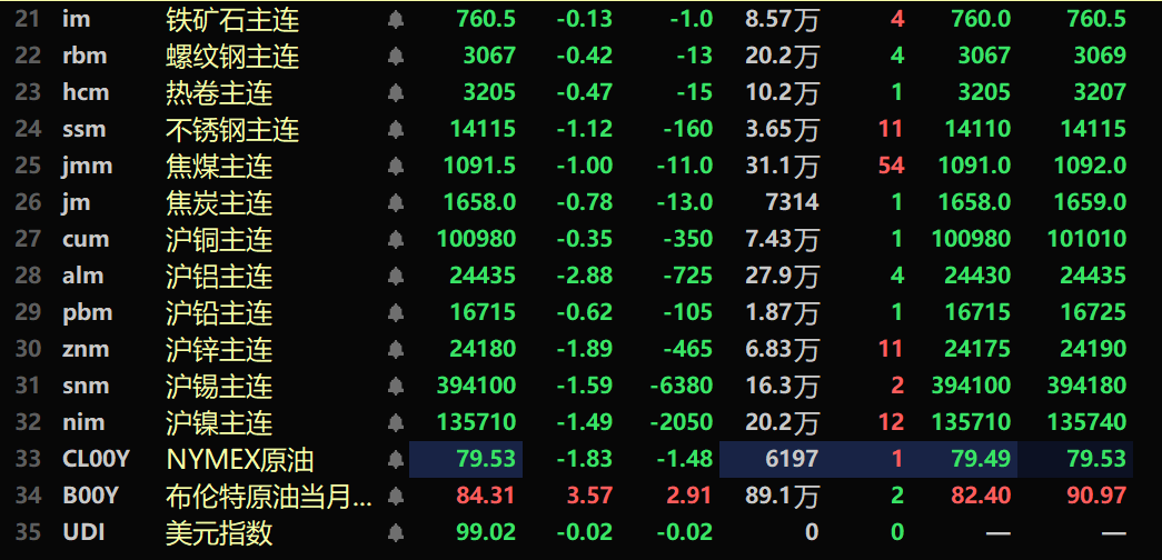 隔夜黑色系均飘绿,铁矿跌0.13%,不锈钢跌1.12%,螺纹钢0.42%,热卷跌0.47%。双焦方面:焦煤跌1%,焦炭跌0.78%。