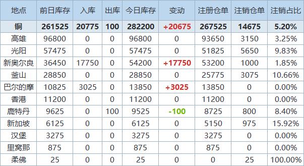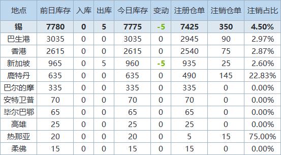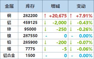 》查看更多金属库存信息