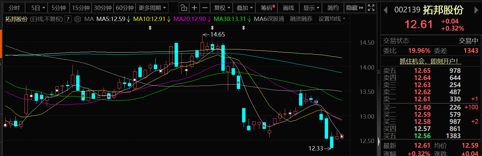 3月6日,拓邦股份股价出现上涨,截至6日11:03分,拓邦股份涨0.32%,报12.61元/股。