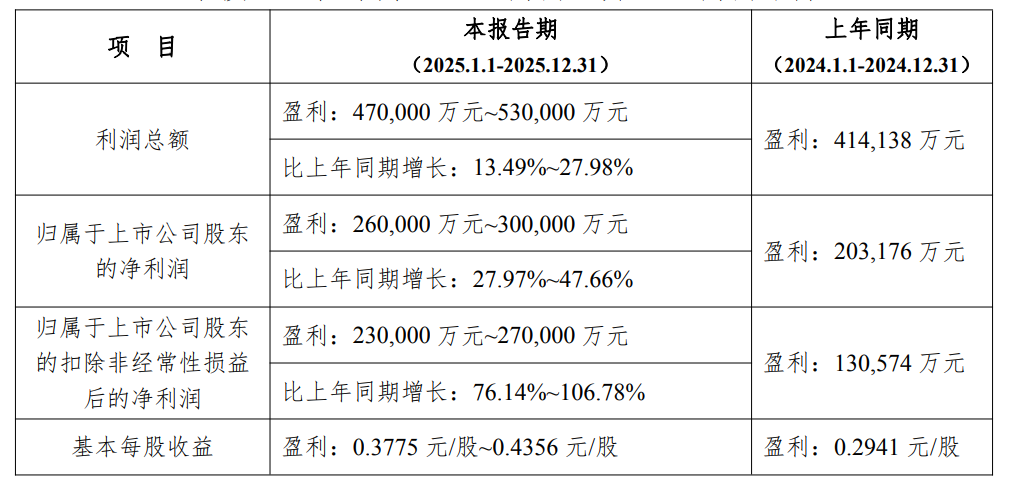 对于业绩变动原因,华菱钢铁表示:2025 年,钢铁行业持续深度调整,仍处于“减量发展、存量优化”阶段,供需矛盾依然突出,企业经营仍面临较大压力。面对复杂严峻的市场形势,公司保持战略定力,积极对接市场需求,大力推动降本增效各项工作,加快推进“高端化、绿色化、智能化、精益化”四化转型,生产经营情况稳定向好,在消化补缴环境保护税及滞纳金约6.57 亿元的情况下,预计 2025 年度实现利润总额47 亿元~53 亿元,实现归属于上市公司股东的净利润26 亿元~30 亿元,同比增长27.97%~47.66%。