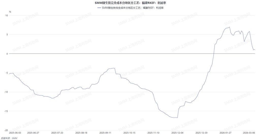 25天前镍矿价格计算高镍生铁现金成本下,本周高镍生铁冶炼厂利润继续收缩。从原料端来看,镍矿成本持续上升,推动高镍生铁生产成本维持涨势。同时高镍生铁价格涨幅放缓,冶炼厂利润率受到压制。展望后市,原料端来看,矿价仍然易涨难跌,整体生产成本预计将继续上涨,预计冶炼厂成本压力加剧。