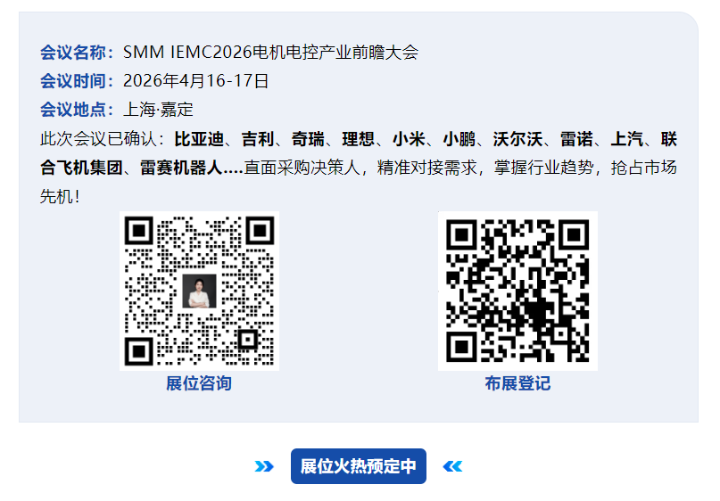为促进产业链上下游精准对接与协同创新,SMM IEMC 2026(第五届)电机电控产业前瞻大会特设三大产业聚焦板块。本届大会为产业可持续高质量发展提供实质性助力。