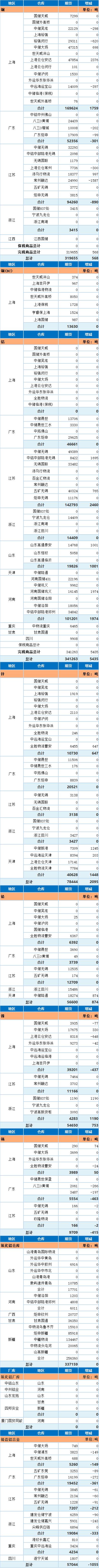 11月6日上海期货交易所金属库存日报