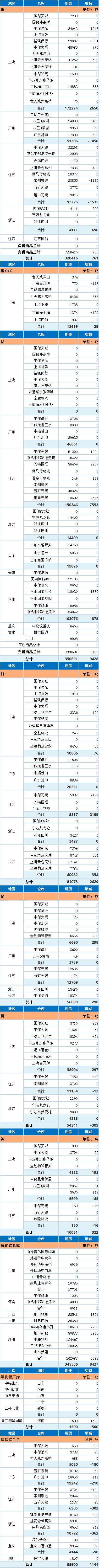 11月6日上海期货交易所金属库存日报