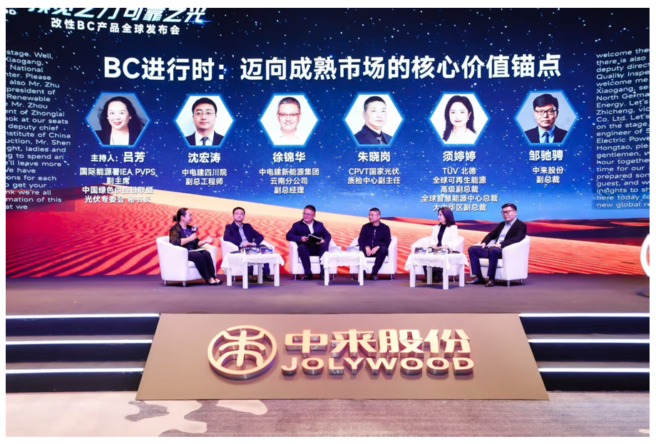 签约仪式圆满落幕后,一场聚焦BC技术创新与产业发展的圆桌对话随即开展。中国绿色供应链联盟光伏专委会秘书长吕芳主持本次对话。活动汇聚行业各界精英力量,国内大型设计院领导、终端业主代表、国内外权威认证机构高管,与中来股份副总裁邹驰骋并肩围坐,以多元视角共话BC技术未来演进路径,精准锚定行业高质量发展的价值核心。