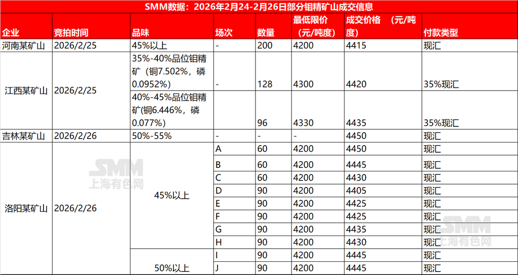 2月25-26日钼矿山钼精矿成交汇总【钼精矿竞标成交信息】