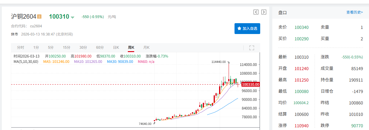 花旗称,短期看涨铜价,预计未来三个月铜价将触及每吨14,000美元;2026年平均铜价基准情景预测仍为每吨1.3万美元。