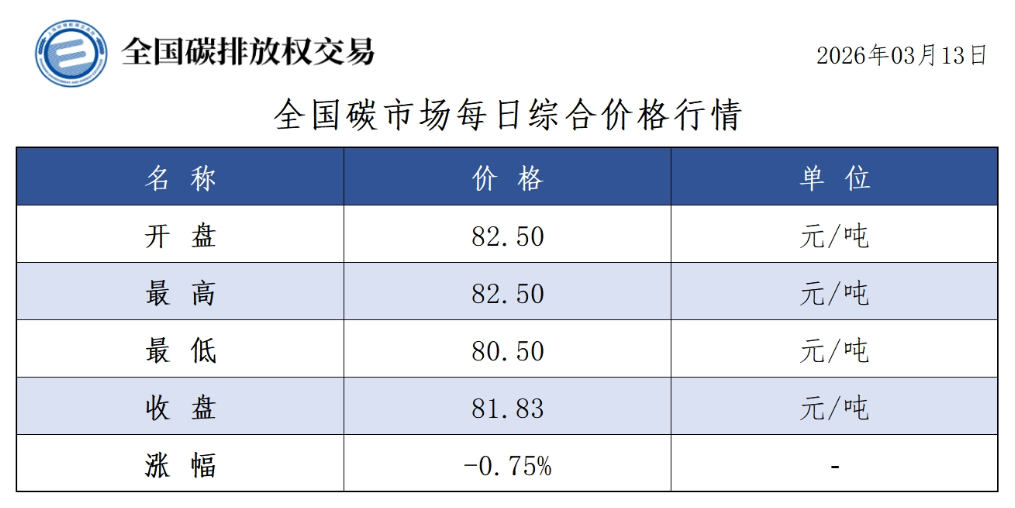 2026年1月1日至3月13日,全国碳市场碳排放配额成交量17,154,807吨,成交额1,277,855,453.60元。
