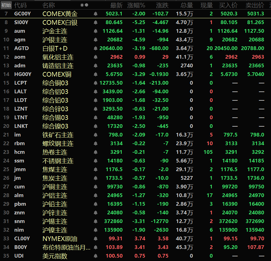 金属市场方面: