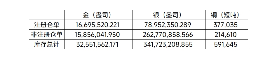 2026年3月12日COMEX金属库存