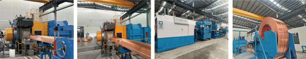 公司专注于高精度无氧铜加工,专业生产优质上引无氧铜杆、无氧铜母线、铜棒材及异型铜材,高精度无氧铜板、铜带等产品。公司拥有多套国内先进的节能环保型上引连铸机组,可为客户提供优质的中8.0~35.0MM多种规格的电工用无氧铜杆。公司拥有多套国内最先进的各种型号铜材连续挤压机组和全自动铜母线拉拔校直一体机组,可为客户提供各种规格的铜母线及铜棒材,可生产320MM及以下宽度的铜母线产品,可生产中120MM及以下的铜棒材产品,其内在质量及氧含量均优于国标要求。公司拥有强大的模具设计与开发能力,可为客户提供技术支持,研制开发异型铜母线及电工专用异型产品。