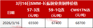 【SMM价格】2026年3月16日长振黄铜棒价格