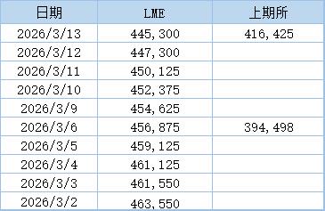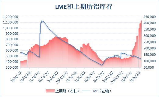 以下为2026年3月以来LME和上期所铝库存数据:(单位:吨)