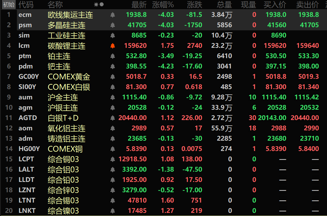 隔夜外盘金属方面,LME基本金属普涨。伦铜涨1.08%,伦铝跌1.38%,伦铅涨0.92%。伦锌跌0.52%。伦锡涨1.6%。伦镍涨1.27%。